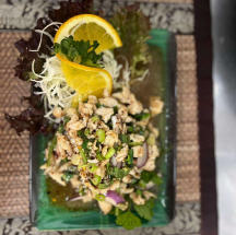 Im Chiang Mai Thai-Restaurant werden als Vorspeisen die traditionellen thailändischen Laab-Salat serviert, diesmal mit Entenbruststreifen. Die Entenbruststreifen sind mit zerstoßenem, geröstetem Re... 7,90 EUR